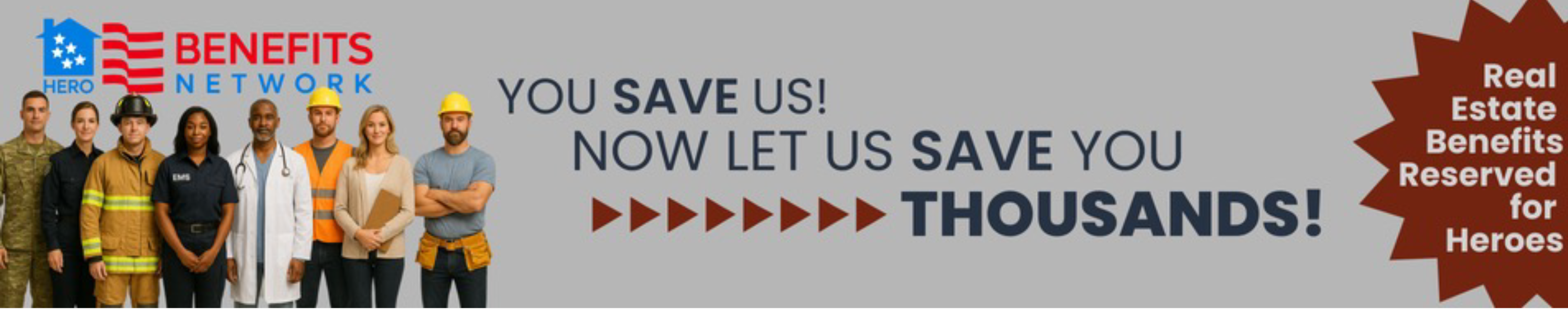 Hero Benefits Network (HBN) was founded to honor and support America’s heroes—including military personnel, first responders, healthcare workers, educators and all support staff, and other essential professionals—by providing housing assistance and exclusive benefits.